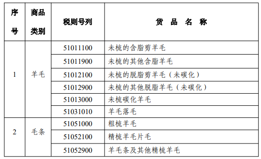2026年羊毛进口关税配额总量为28.7万吨,毛条进口关税配额总量为8万吨。实行关税配额管理的羊毛、毛条税目见附1。